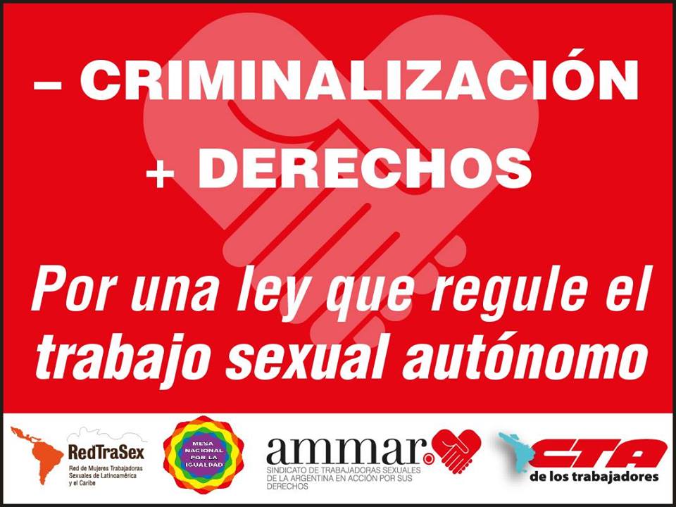 Por una Ley que regule el Trabajo Sexual Autónomo, basta de criminalizarnos no somos víctimas de Trata somos Trabajadoras Precarizadas!!!